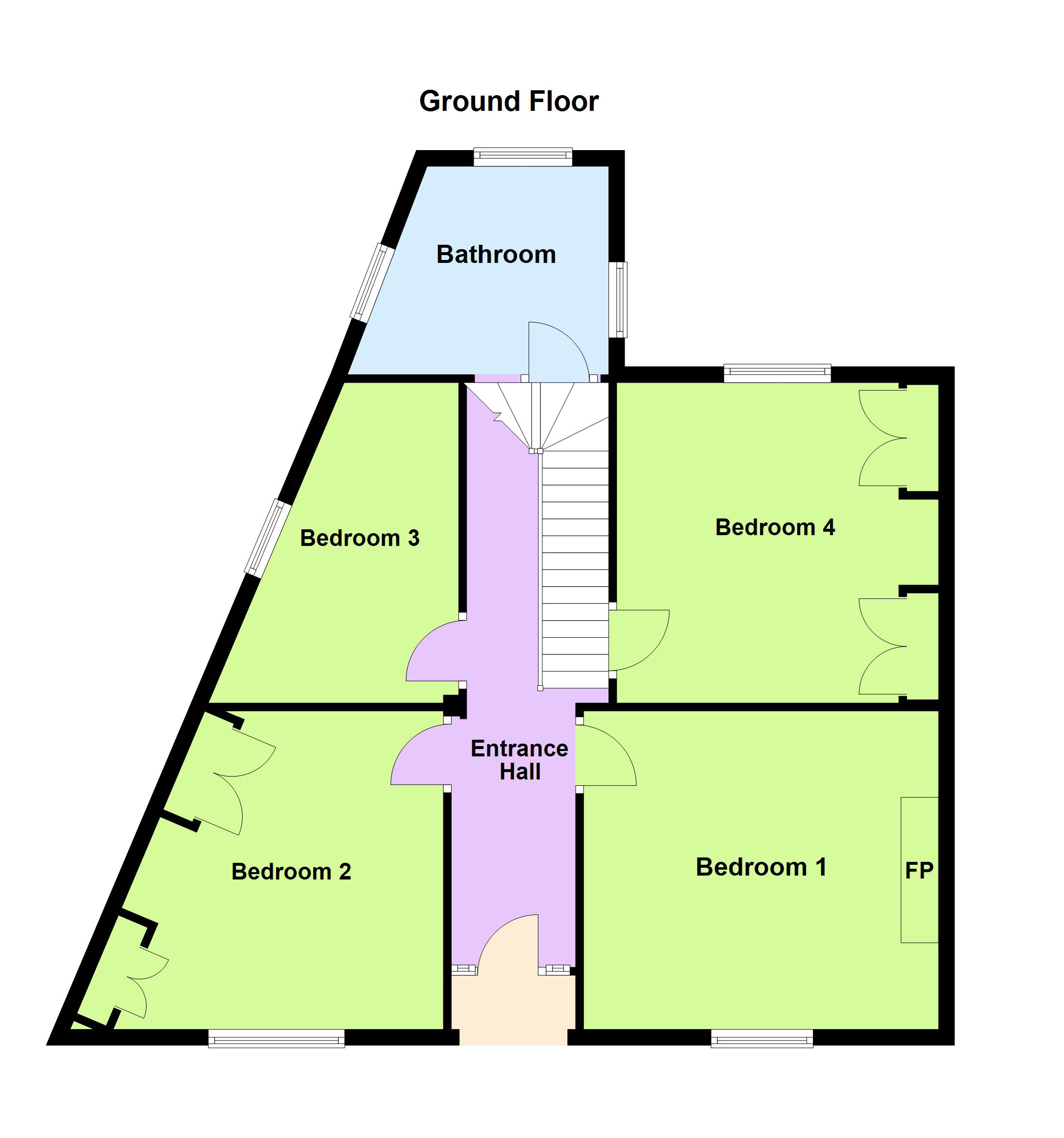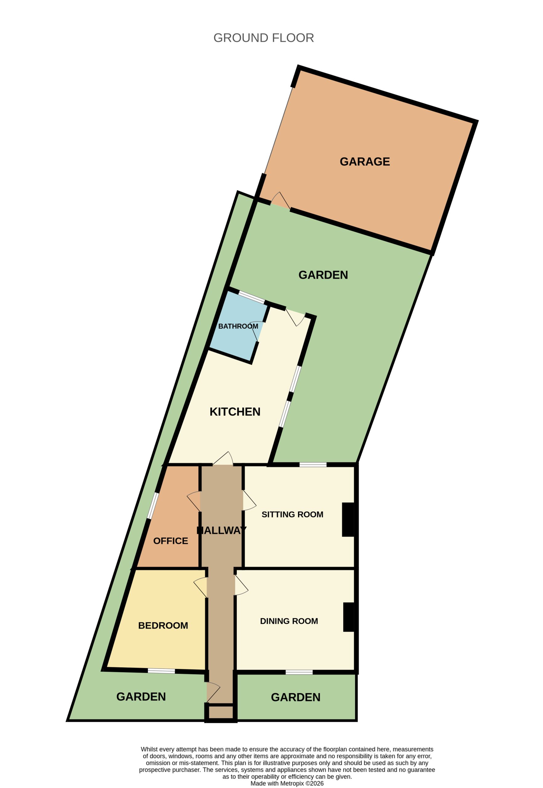 The main living room is a comfortable and inviting space, centred around an open fireplace and enhanced by large windows that flood the room with natural light. The dining room provides an ideal setting for family gatherings and entertaining. The ground floor bedroom is a generous double with fitted wardrobes, while the office offers a quiet and convenient workspace.