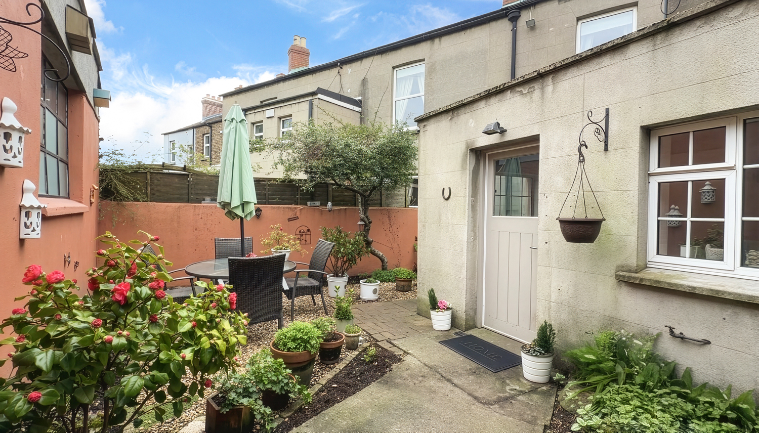 Externally, the property features a low-maintenance rear garden, ideal for outdoor dining and entertaining, which leads to the substantial garage with access onto Raymond Street. To the front, there is a railed garden that extends along the side of the house to the garage.
