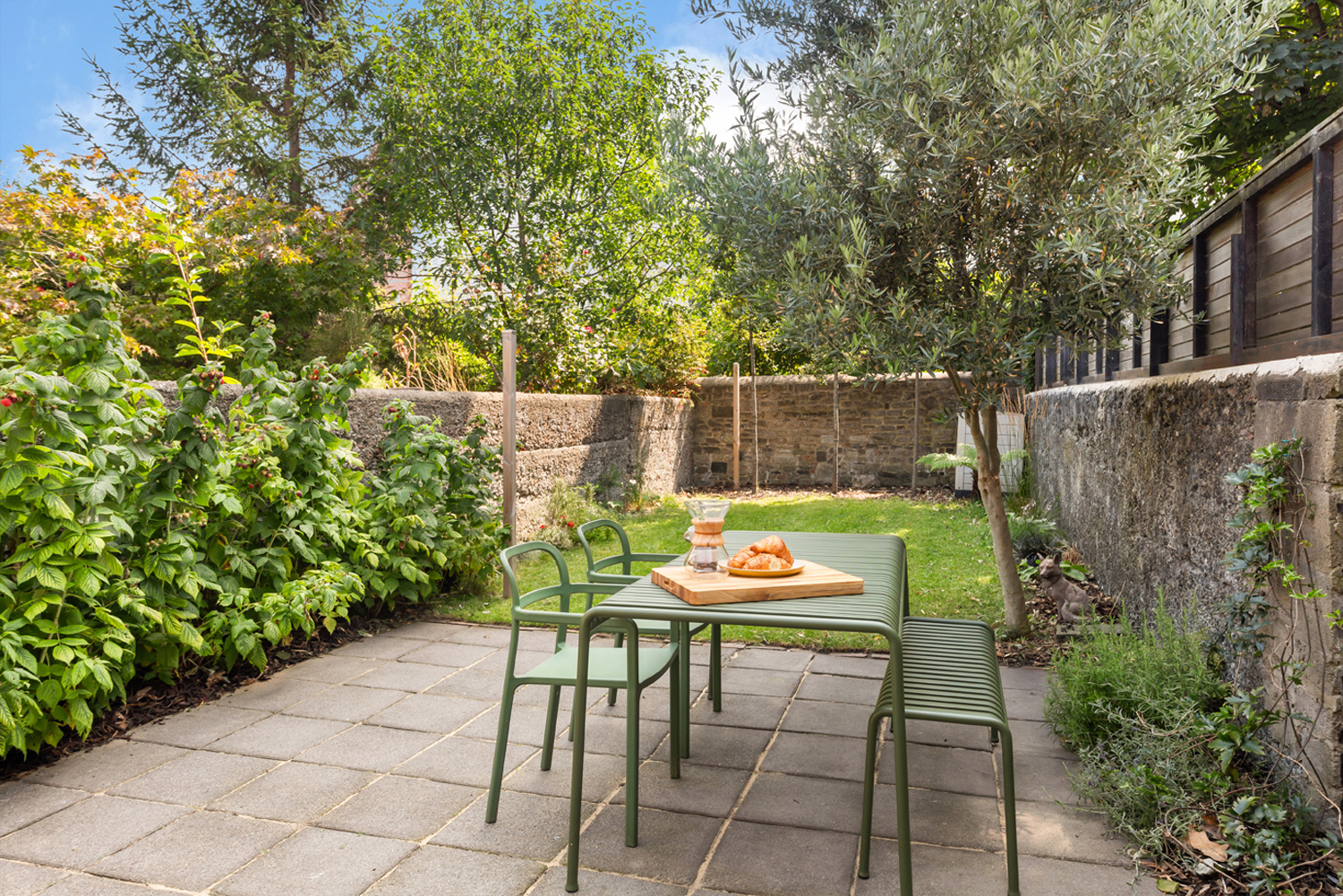 Outside, the rear garden is a true delight. A raised cobble-locked terrace off the dining room leads down to a patio with fruit trees and onwards to a lush lawn, offering both tranquillity and privacy.
