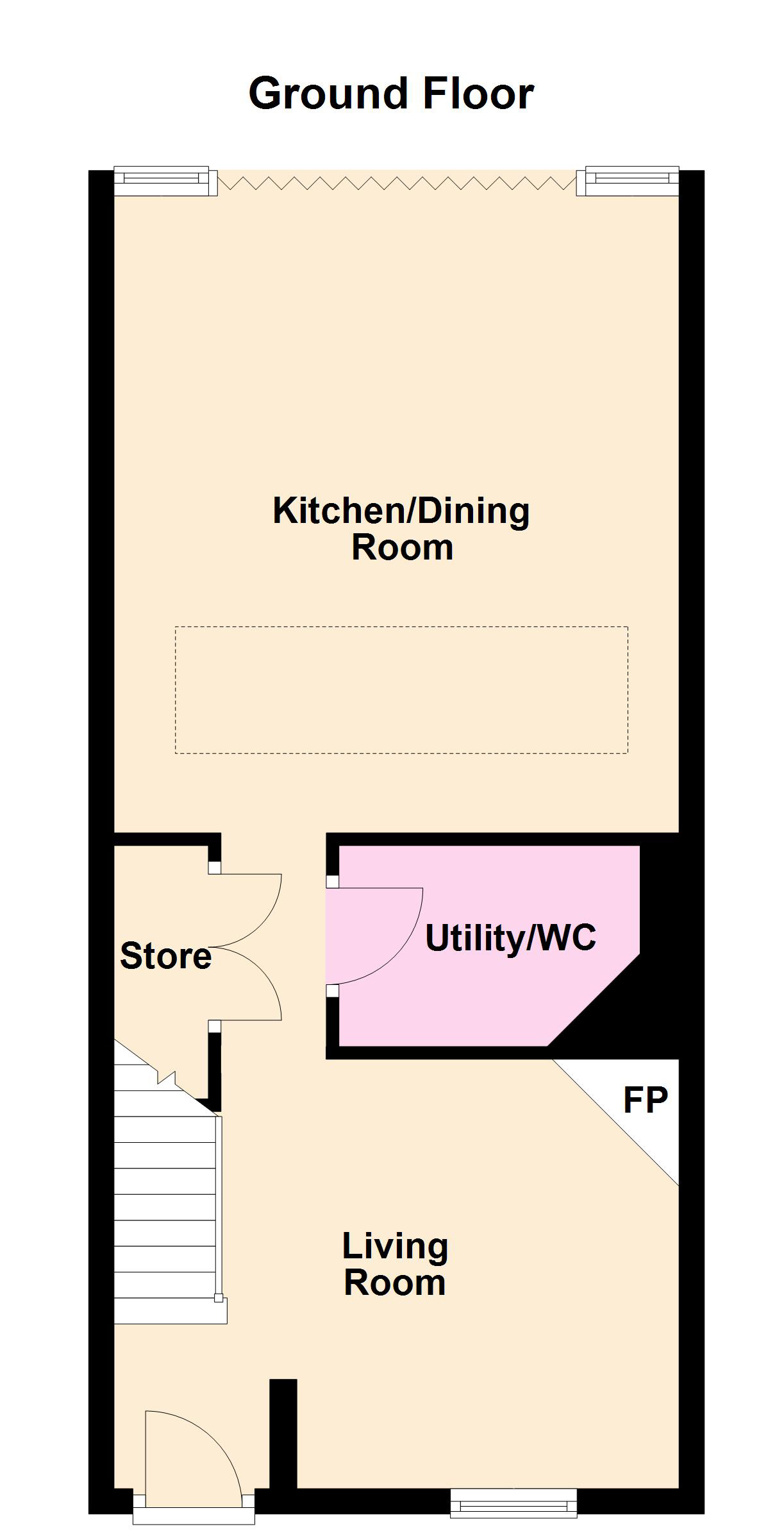 Tiled floor. Fitted floor units. Plumbed for washing machine and dryer. Stainless steel sink units Tiled splashback.