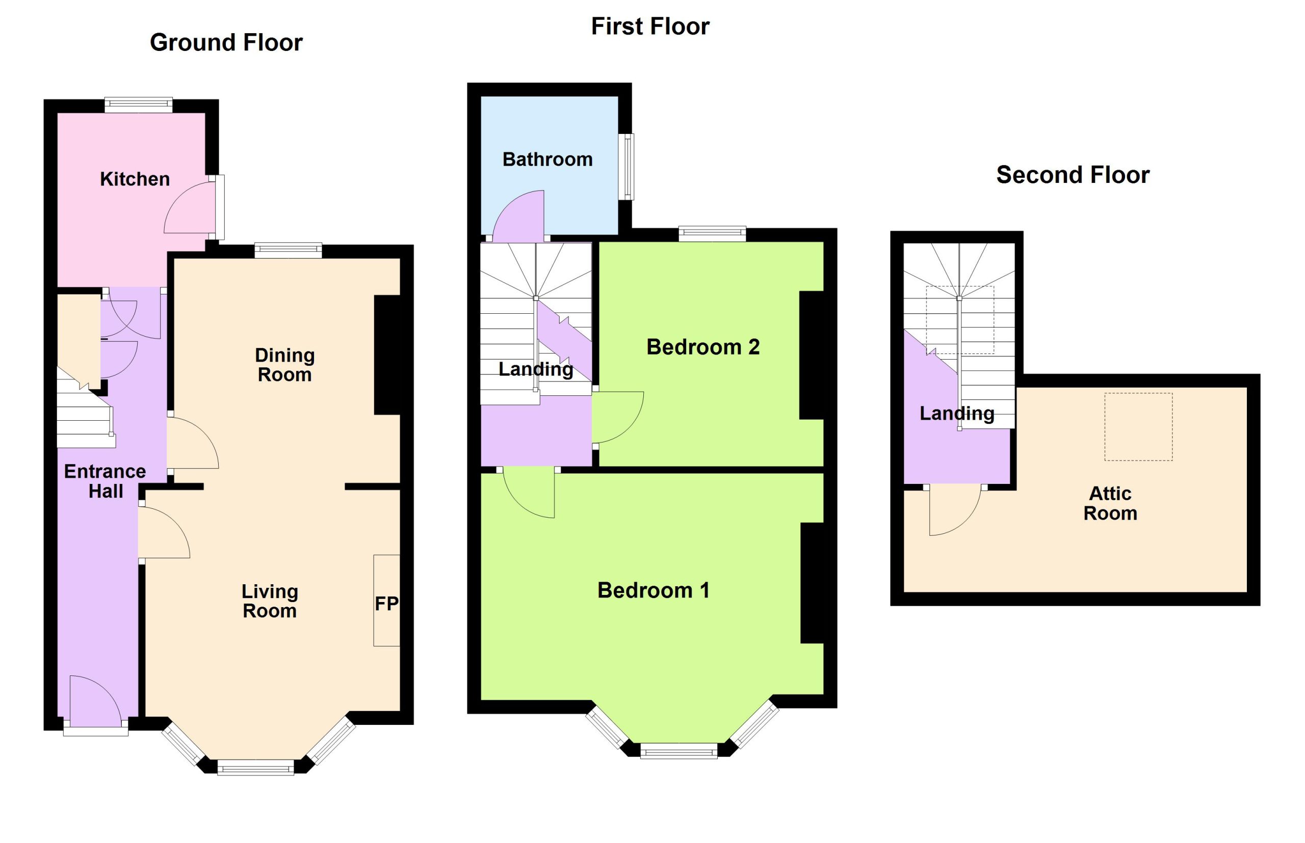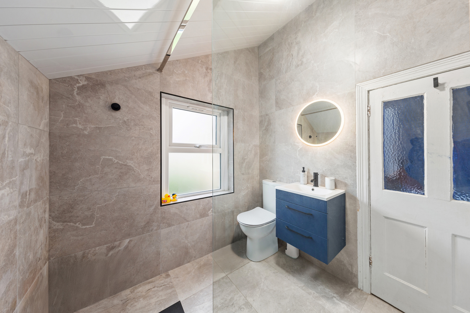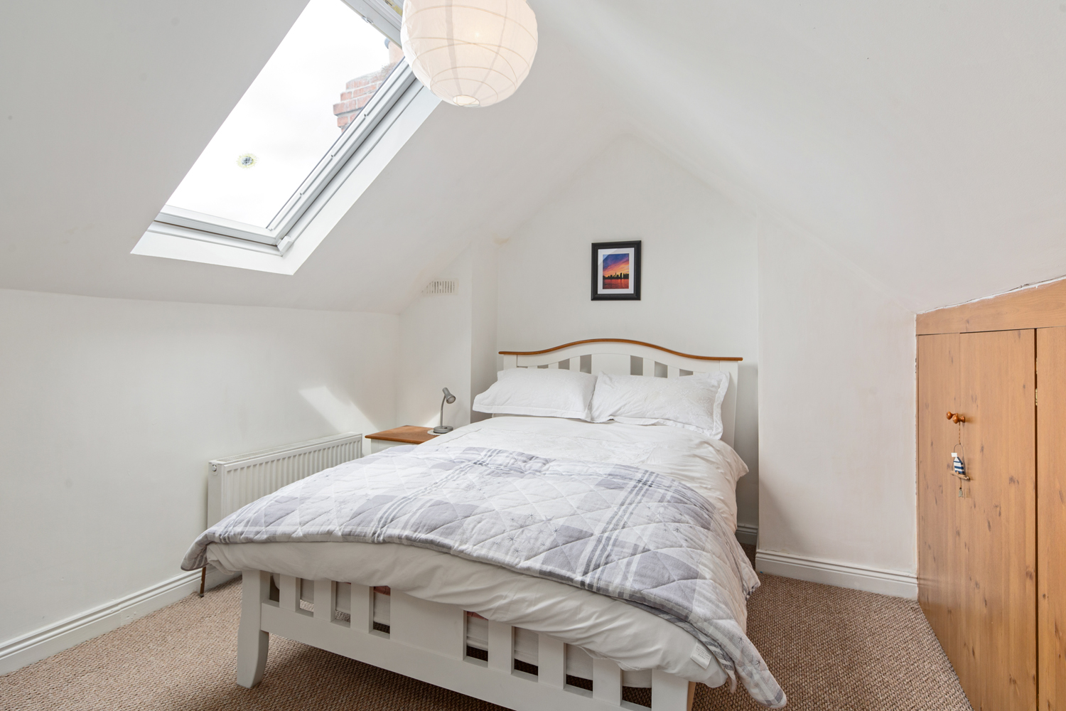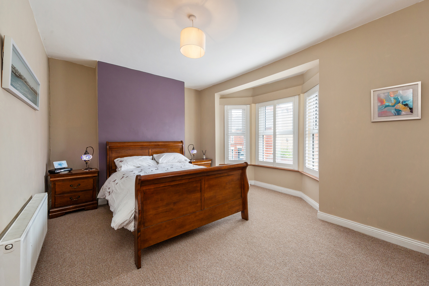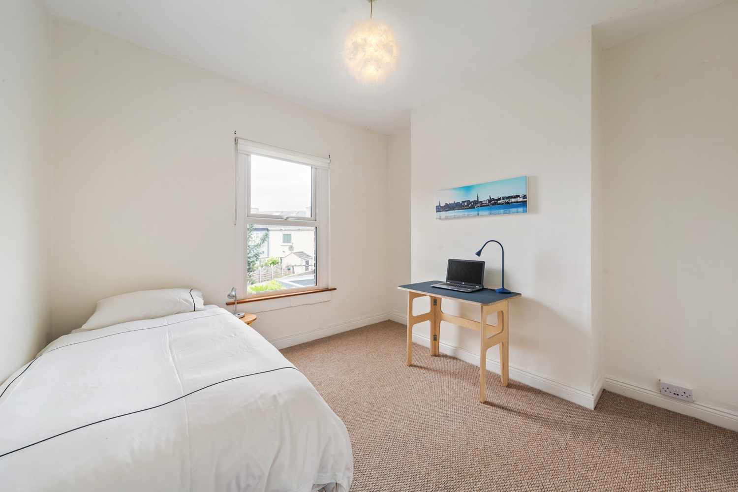 The first floor hosts a generous main bedroom with a bay window, a second spacious double bedroom, and a fully refurbished, well-appointed bathroom on the return, complete with full tiling and a large shower cubicle. The top floor offers a third bedroom—a versatile space ideal as a home office, studio, or guest room.