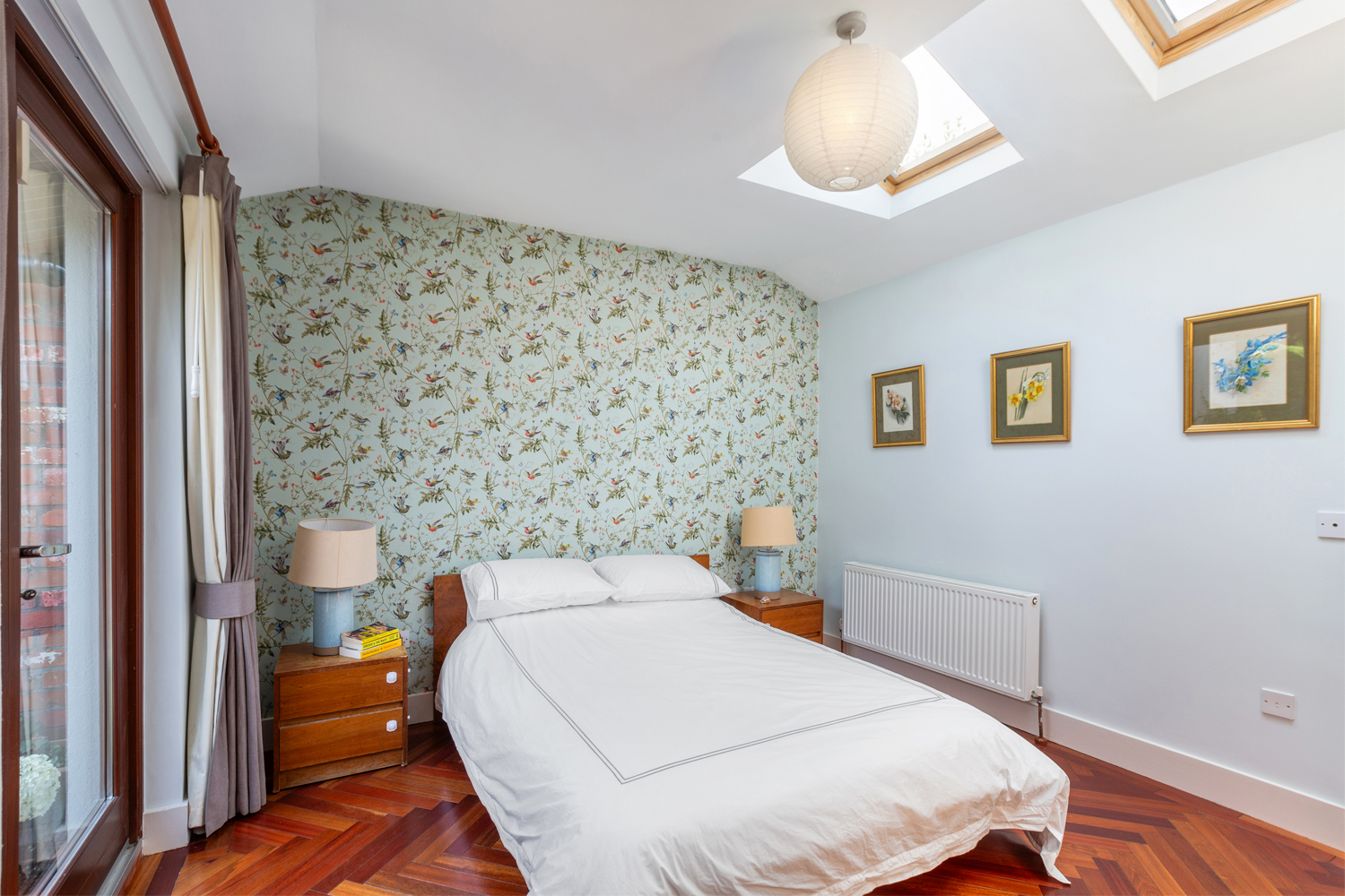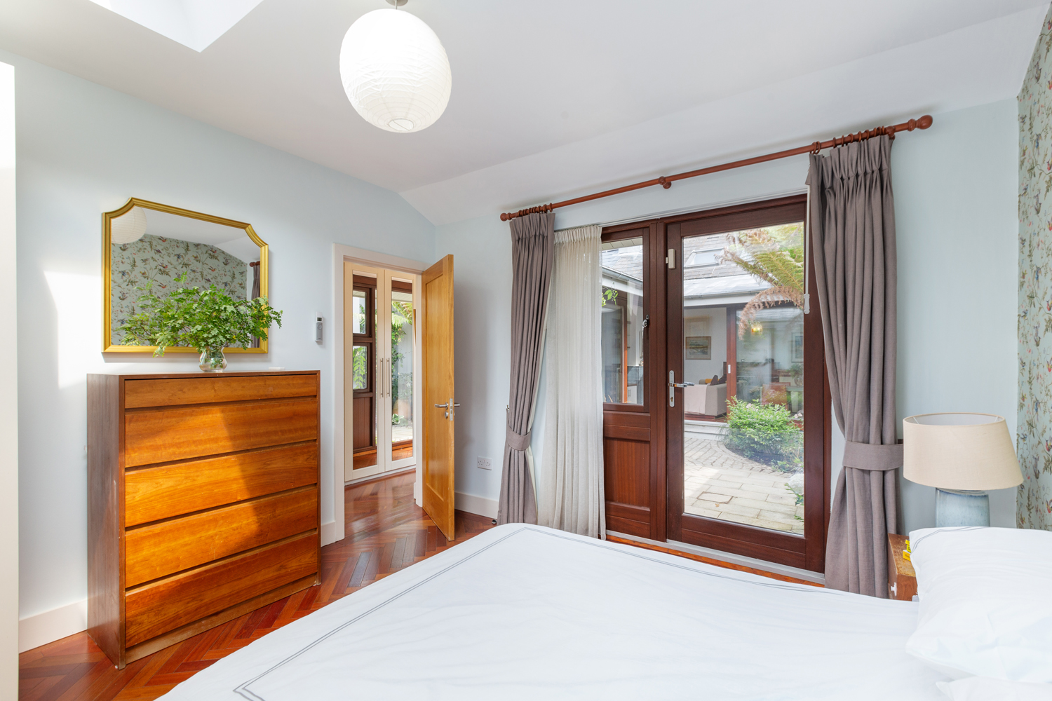 Jatobá hardwood floor. 2* velux windows. Built in wardrobes. TV point and Phone point, Doors to courtyard.
