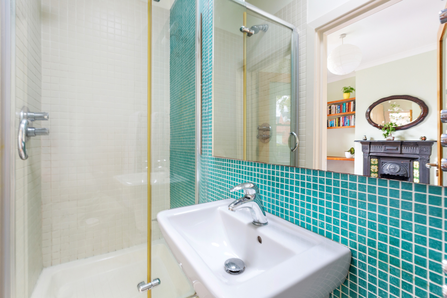 To the front of the house lies the main bedroom, a generous double and featuring a fireplace salvaged one from the right period, window shutters, built in desk and shelving and the same elegant Jatobá hardwood floor. This room is complemented by a stylish en suite bathroom, adding comfort and convenience.