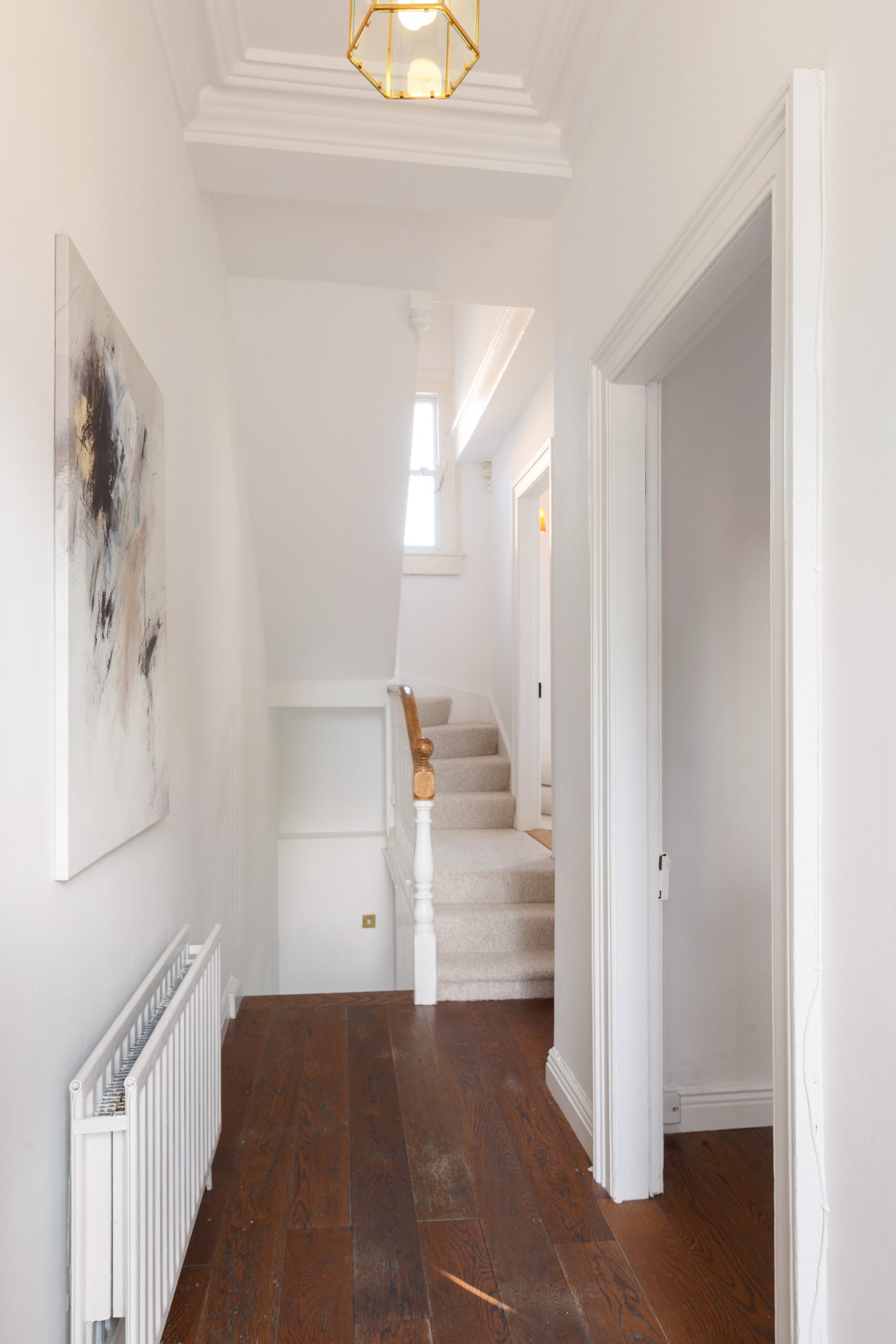 Timber flooring. Ceiling coving. Ceiling rose. Fireplace with tiled inset.