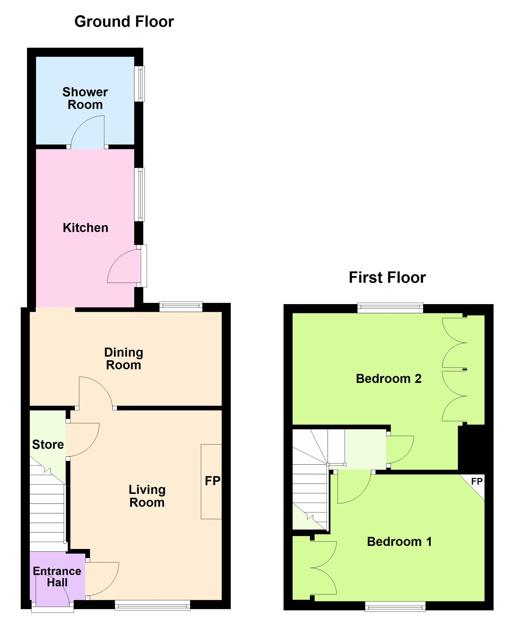 The front door opens to an entrance hallway and which in turn opens to a large bright living room. The focal point of the room is a fireplace and there is built in shelving. This room leads to a dining room and from here there is an opening to the fully equipped kitchen with a range of wall and floor units. A door leads from the kitchen to the rear garden. The shower room is located off the kitchen. Upstairs, there are two spacious double bedrooms. Both bedrooms come complete with built-in wardrobes. Outside there is a patio garden with a sunny aspect. To the front there is a small railed garden.