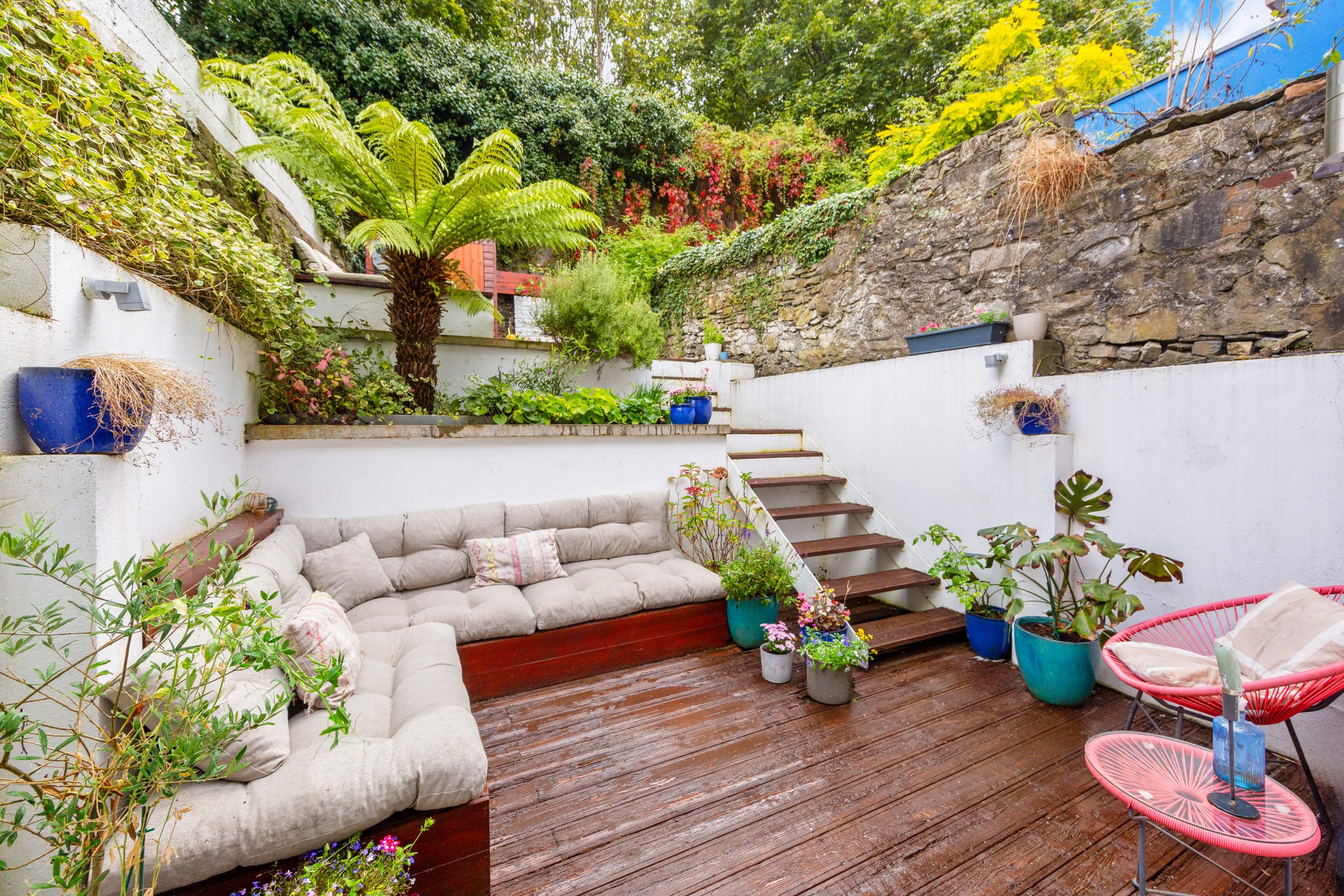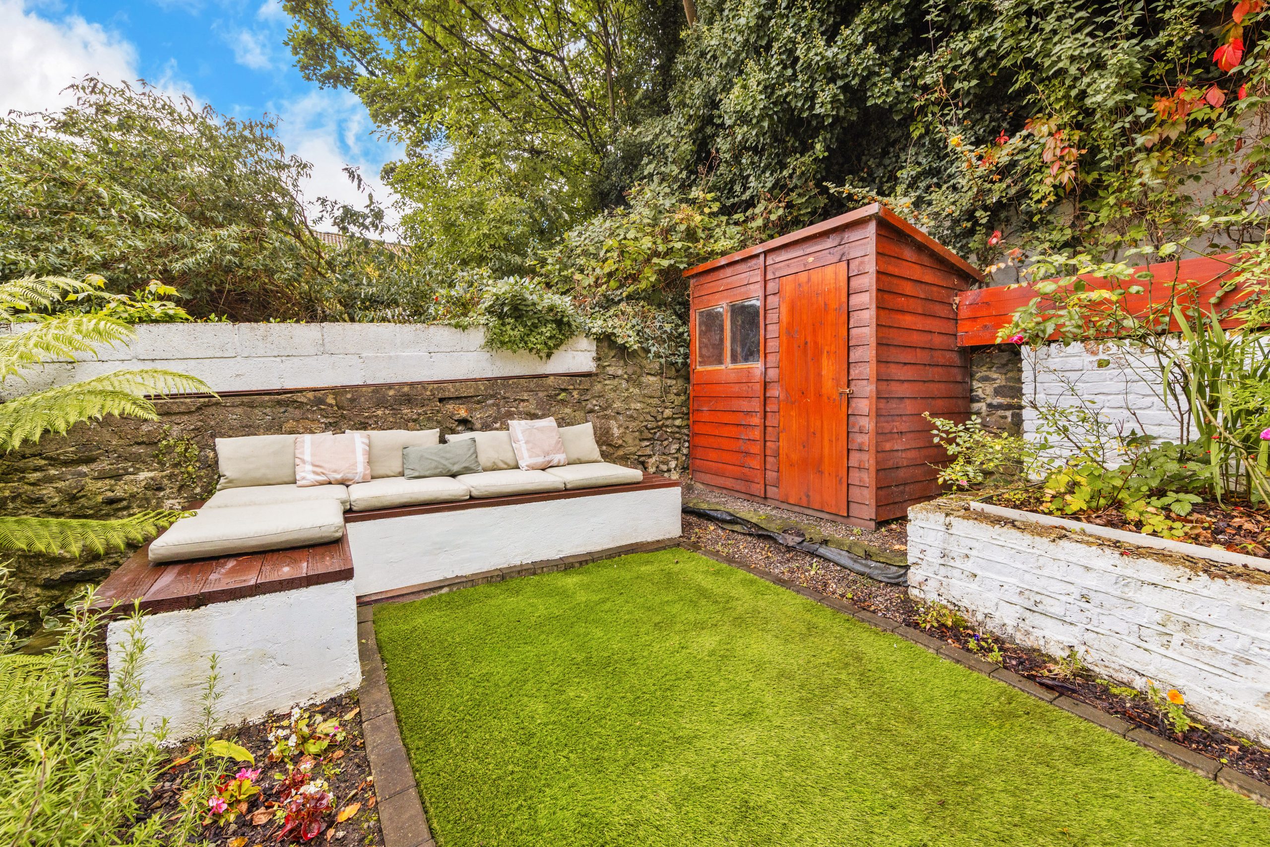 South facing, Private tiered landscaped rear garden with array of planting and shrubs. Hand-built stone wall. Decked patio.