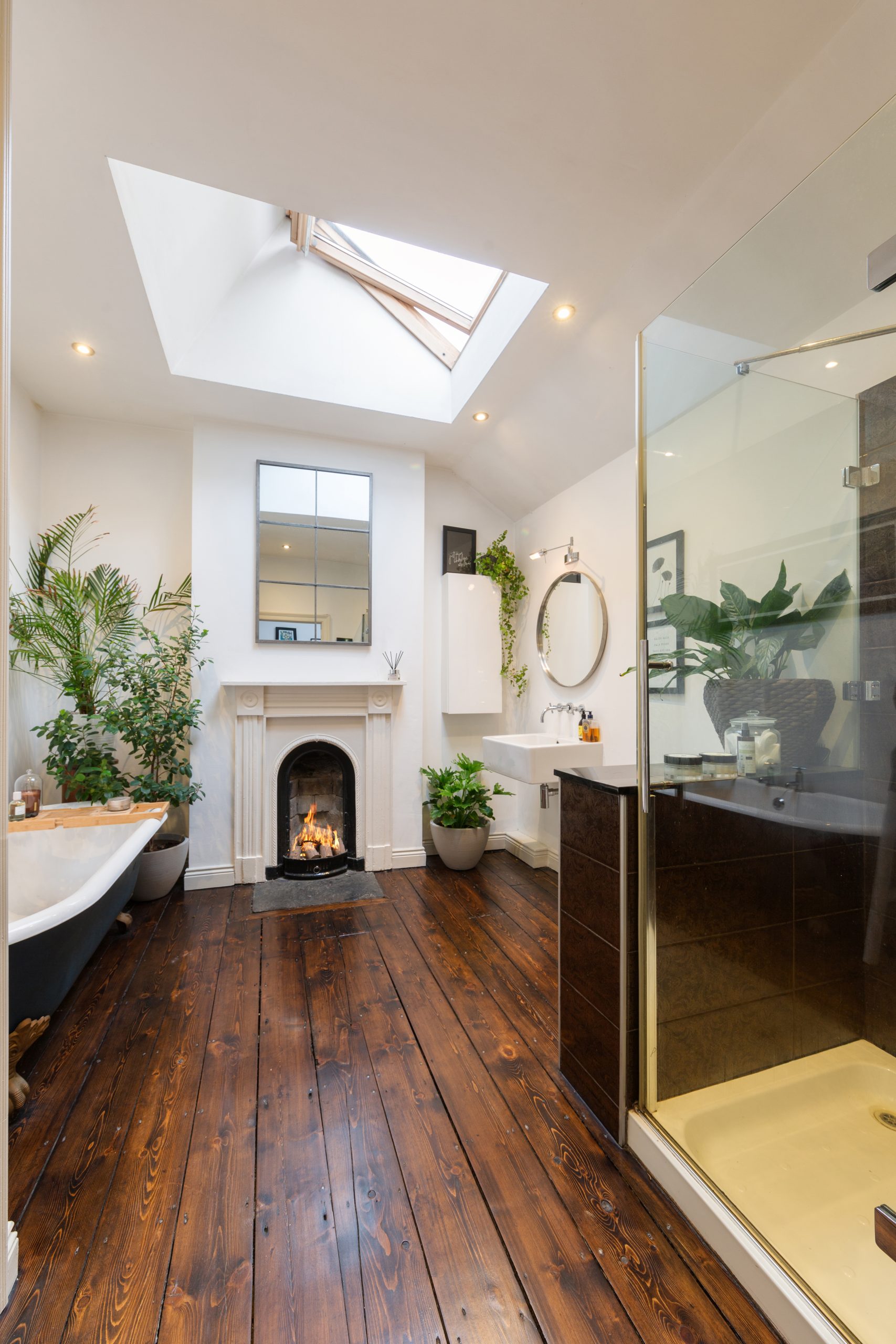 Original timber flooring. Cast iron 4 claw bath. Double walk-in shower with oversized shower head. Wash hand basin. WC. Original cast iron fireplace. Velux window. Recessed lighting. Hotpress.