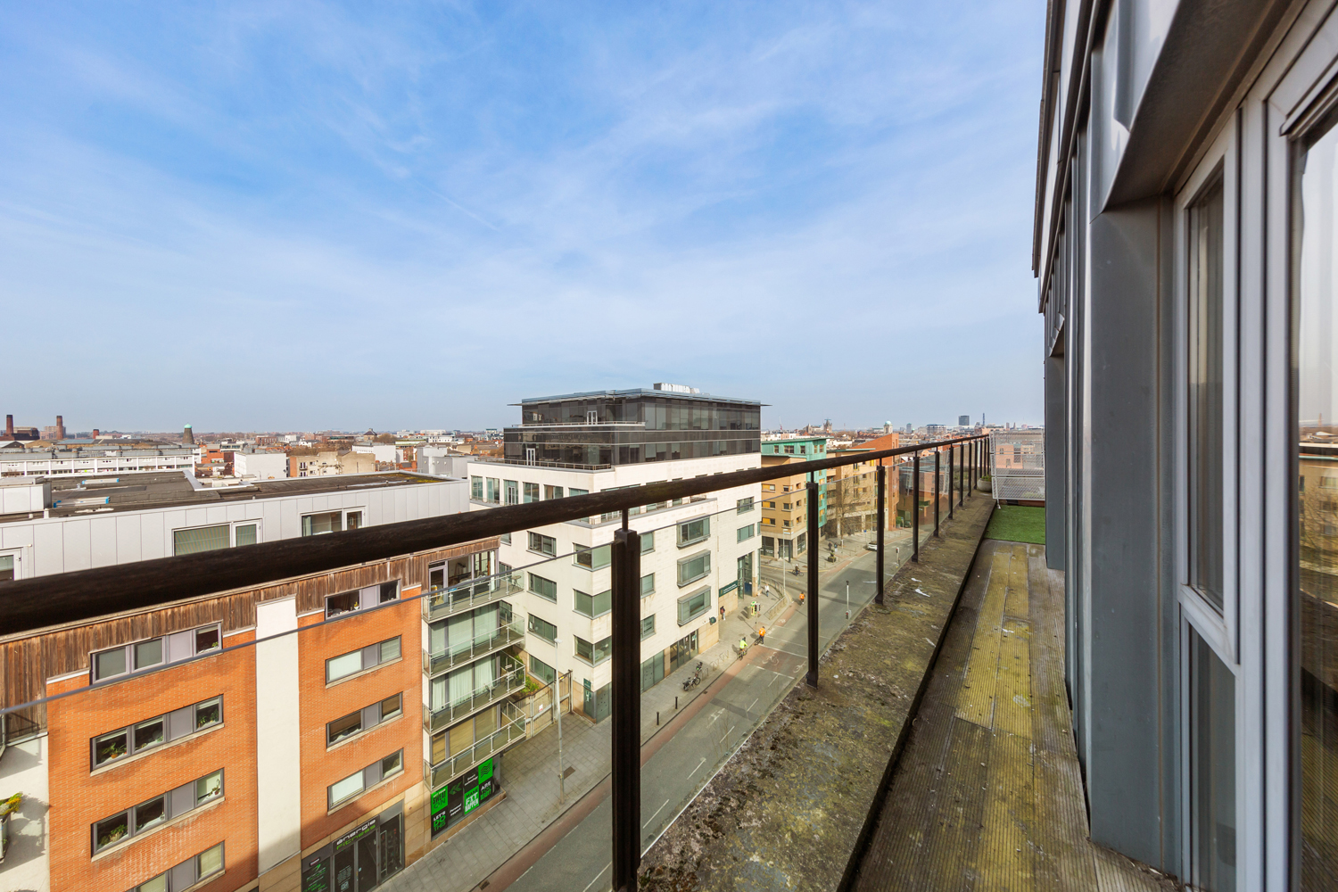 Solid wood floor. TV point. Double doors to balcony. Extensive glazing with views toward north Dublin.