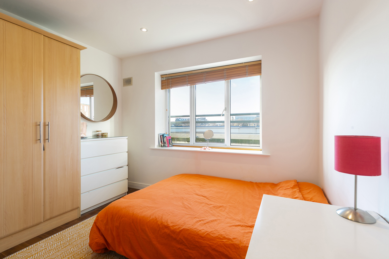 Laminate wood floor. Fitted shelfing. Fitted wardrobes. TV point. Sliding door to balcony