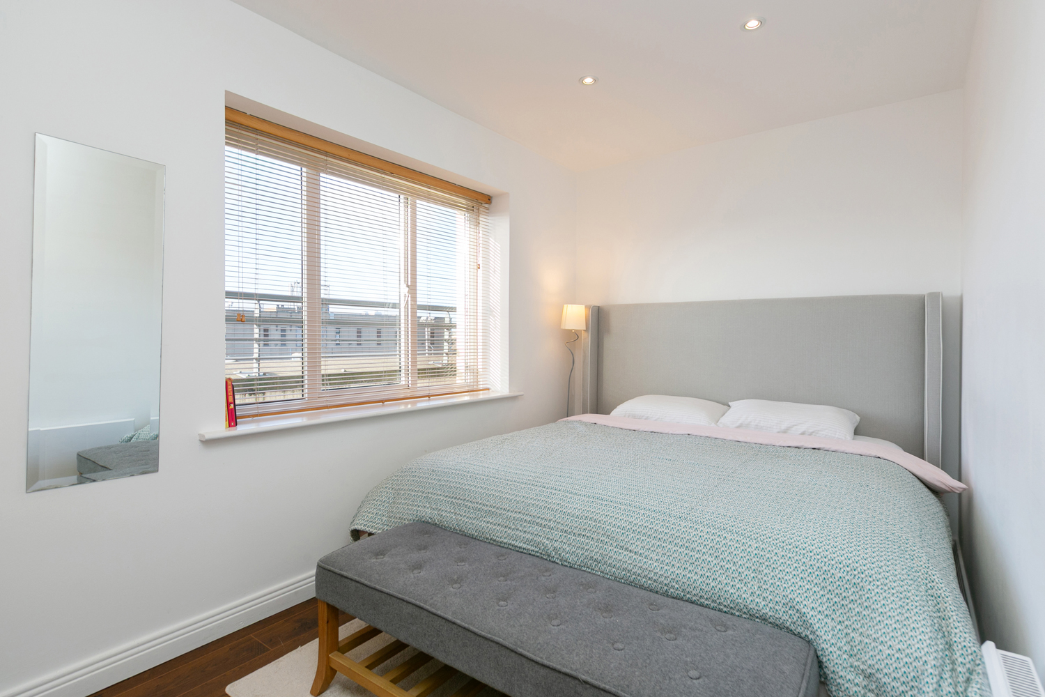 Laminate wood floor. Built in wardrobes. Recess lighting