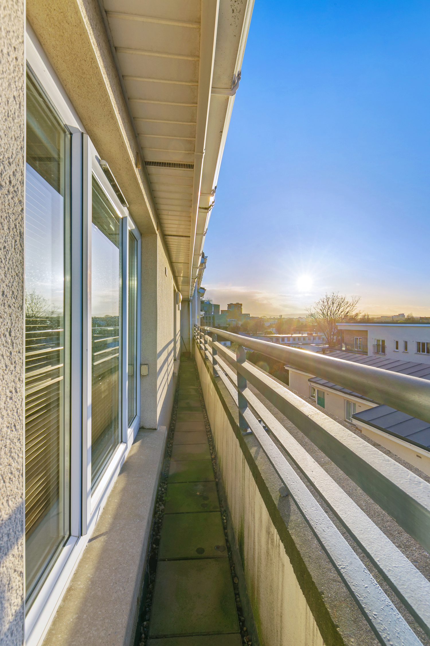 Balcony overlooking courtyard with south-westerly aspect